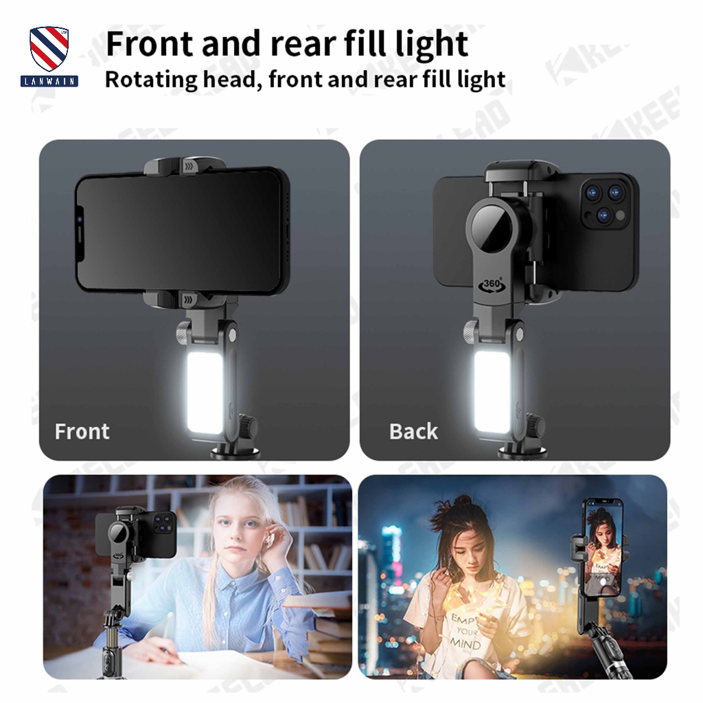 Detail Lanwain Q18 Gimbal Stabilizer Handphone Gimbal Hp Stabilizer Tongsis Hp Bluetooth Tripod