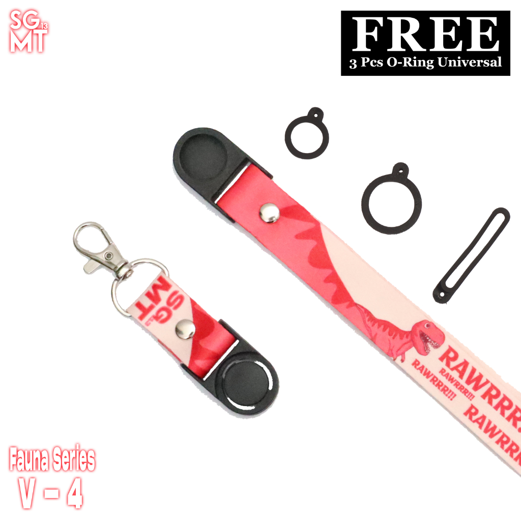 Detail Lanyard ID Card Holder Name Tag HP Lanyard Full Printing FREE 3 Pcs Oring Dinosaurus DINO Fauna Series
