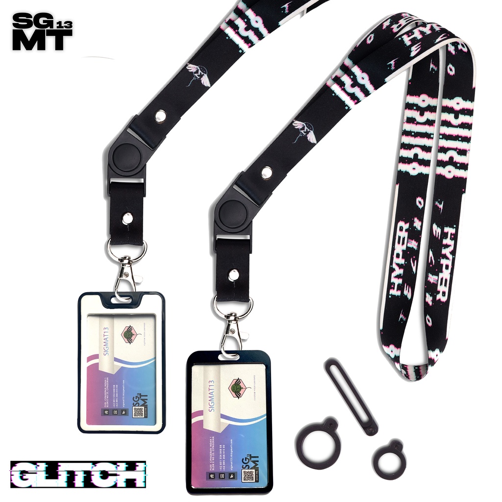 Detail Lanyard id card holder name tag Hp Lanyard full printing GLITCH 3 pcs Oring