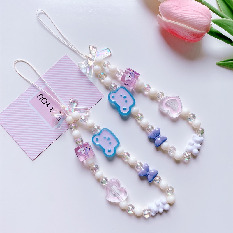Detail Lanyard Rantai Manik-Manik Mutiara Bentuk Beruang Untuk Aksesoris Ponsel
