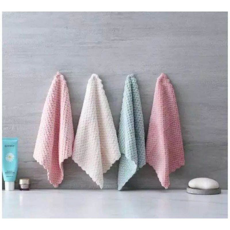 KEUNGGULAN HANDUK KAMI : *Cepat kering setelah digunakan walau hanya dengan suhu ruangan. *Desain handuk kain yg unik dengan motif berbeda untuk menambah koleksi perlengkapan dapur . *Berdaya serap tinggi dan menawarkan warna-warna pastel yang cantik. *Bahan microfiber bulu berkualitas tinggi, menghindarkan Anda dari rasa gatal , lembut dan aman di kulit.