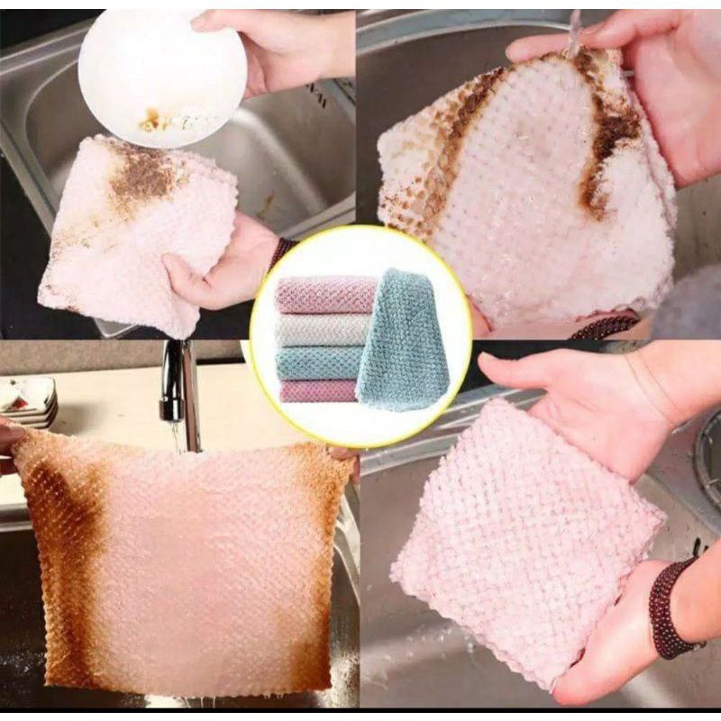Detail Lap piring microfiber ukuran 30 × 30 cm isi 3pcs | Lap kain daya serap tinggi | Serbet serbaguna
