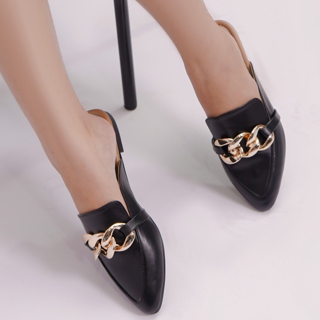 LAPEPA YUK - AMORA Sepatu Sandal Wanita Slip On Mules Size 36 - 40 Casual Sendal Slop Teplek Flat Ujung Lancip Tertutup Anti Licin Warna Hitam Black Tan Brown Cokelat Selop Premium 37 38 39 Perempuan Kekinian Terbaru Shoes ORI Original Mall Official Store