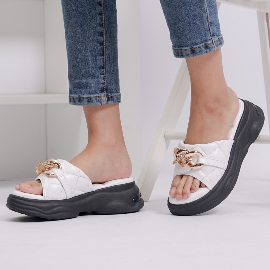 LAPEPA YUK - Dunkenstock CHERIYA Sandal Wanita Wedges Chain Tinggi 5cm Size 36 - 40 Casual Sendal Platform Bellezza 37 38 39 Santai Slop Belleza Warna Black Hitam Selop Premium Original Beleza Kekinian Terbaru Shoes ORI Mall Official Store
