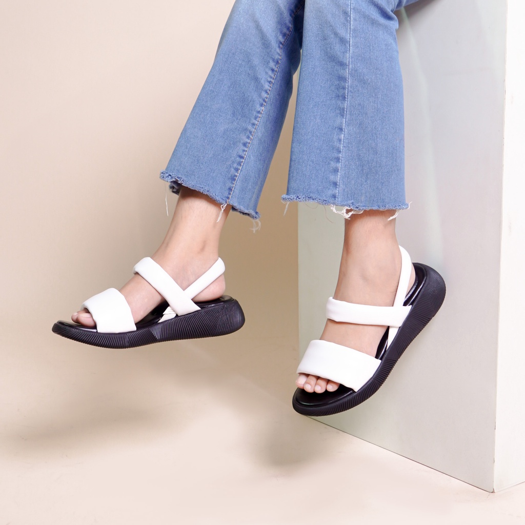 LAPEPA YUK - Sepatu Sandal Wanita Wedges VALERIE Model Ban dua Tali Strap belakang Hak Tinggi Sole 4 cm Spatu Sendal Gunung Cewek Size 36 37 38 39 40 41 Warna Putih White Cewe Kekinian Premium Terbaru Shoes Ori Original Mall Official Store Promo