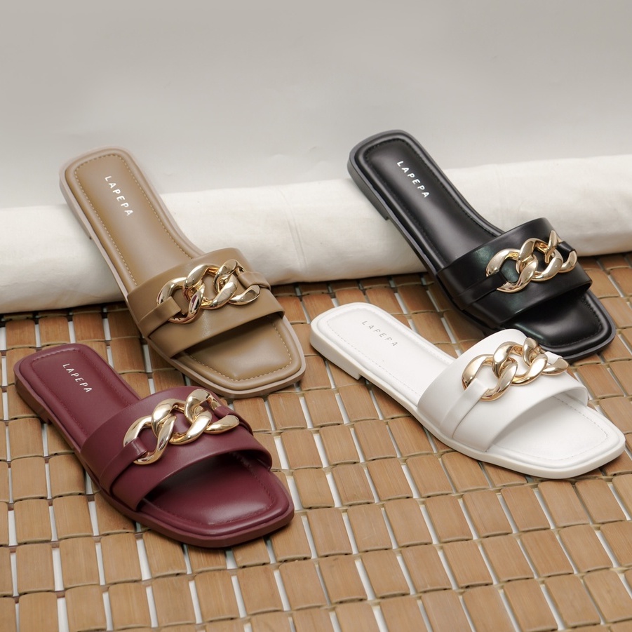 Sepatu Wanita > Sandal > Sandal Flat > LAPEPA YUK - SISILIA Sandal Wanita Teplek Korea Casual Size 36 - 40 Sendal Slop Empuk Flat Cewek Kasual Rumahan Warna Hitam Black Brown Putih Selop Korean Style Santai Premium 37 38 39 Perempuan Kekinian Terbaru Shoes ORI Original Mall Official Store