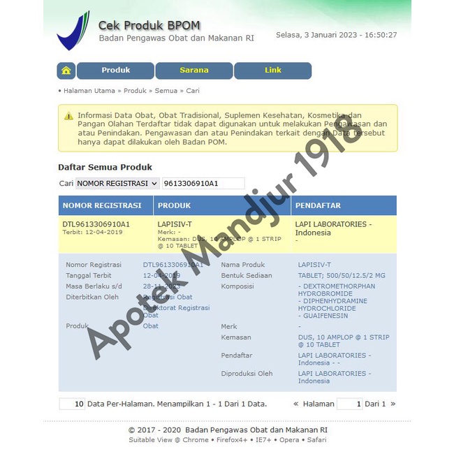 Penjelasan Singkat : - Membantu meredakan batuk - Membantu meredakan pilek karena alergi