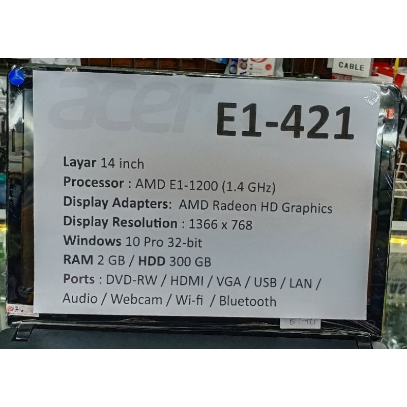 Komputer & Aksesoris > Laptop > Laptop Gaming > Laptop Acer Aspire E1-421 Second Ram 2 GB HDD 300 GB