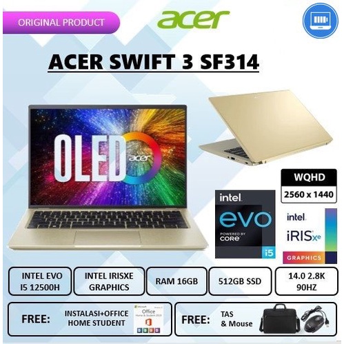 Detail LAPTOP ACER SWIFT 3 SF314 CORE I5 12500H RAM 16GB SSD 512GB LAYAR 14" >>>>> 100% BARU - ORIGINAL - BERGARANSI <<<<<