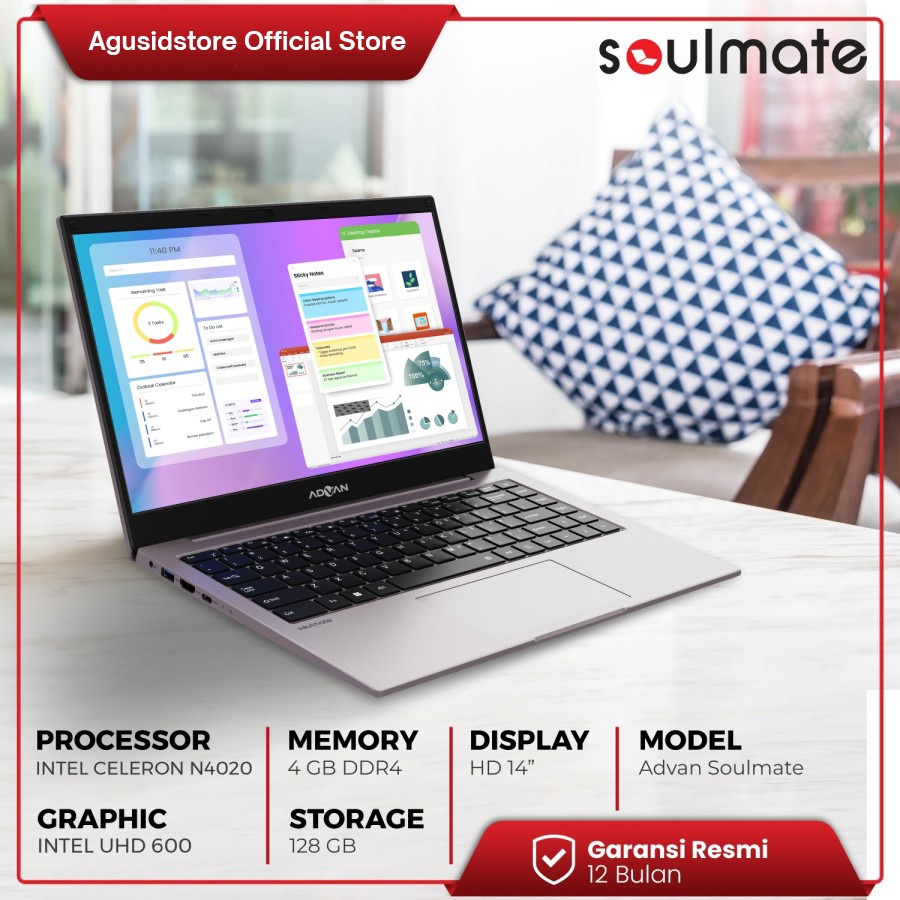 Video perkenalan produk laptop Advan Soulmate SG14S01A - SG14S02A CELERON N4020 [ RAM 4GB 128GB eMMC SSD 256GB ] 14 Inch / HD IPS / Windows 11 Garansi Resmi. Sumber: Shopee.