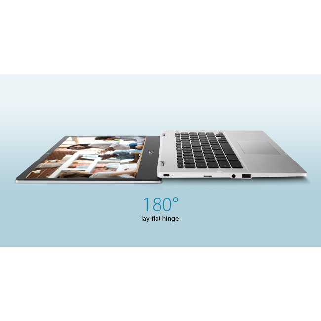 ================================ Spesfikasi: ** Processor : Intel® Celeron® N3350 Processor 1.1 GHz (2M Cache, up to 2.4 GHz, 2 cores) ** VGA : Intel® UHD Graphics ** Memory : 4GB LPDDR4 on board ** Storage : 32G eMMC + 128GB Sd Card ** Display : 14.0-inch, HD (1366 x 768) 16:9, TN, Anti-glare display, LED Backlit, 220nits, NTSC: 45%, Screen-to-body ratio:77 % ** OS : Chrome OS ** Network : Wi-Fi 5(802.11ac) (Dual band) 2*2 + Bluetooth® 4.2 Wireless Card