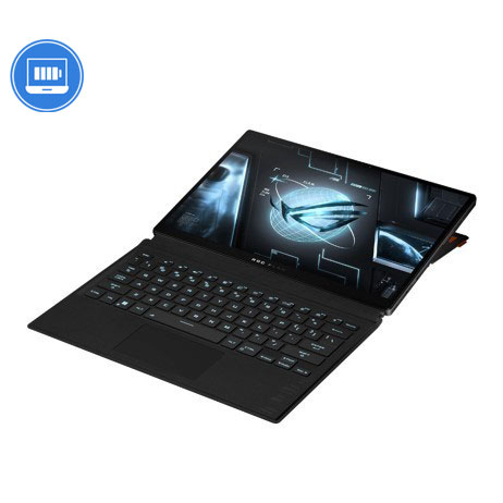 SPESIFIKASI : • CPU : 12th Gen Intel® Core™ i9-12900H Processor 2.5 GHz (24M Cache, up to 5.0 GHz, 14 cores: 6 P-cores and 8 E-cores) • GPU : NVIDIA® GeForce RTX™ 3050Ti Laptop GPU 4GB GDDR6 MUX Switch + Optimus ROG Boost: 1085MHz* at 40W (1035MHz Boost Clock+50MHz OC, 35W+5W Dynamic Boost) • Display : 13.4-inch WUXGA (1920 x 1200) 16:10 Touch Screen IPS-level, Refresh Rate 120Hz Adaptive-Sync, Brightness 500nits, sRGB % 100% Pantone Validated / 13.4-inch WQUXGA (3840 x 2400) 16:10 Touch Screen IPS-level, Refresh Rate 60Hz Adaptive-Sync, Brightness 500nits, DCI-P3 % 85% Pantone Validated • Memory : 16GB (8GB*2 LPDDR5 on board) • Storage : 1TB M.2 2230 NVMe™ PCIe® 4.0 SSD • Operating System : Windows 11 Home • Office : Office Home and Student 2021 • Speaker : 2-speaker system with Smart Amplifier Technology • Keyboard : Backlit Chiclet Keyboard RGB • Audio Tech : AI noise-canceling technology Dolby Atmos Hi-Res certification Smart Amp Technology • Wifi : Wi-Fi 6E(802.11ax)+Bluetooth 5.2 (Dual band) 2*2 (*BT version may change may change with OS upgrades.)"