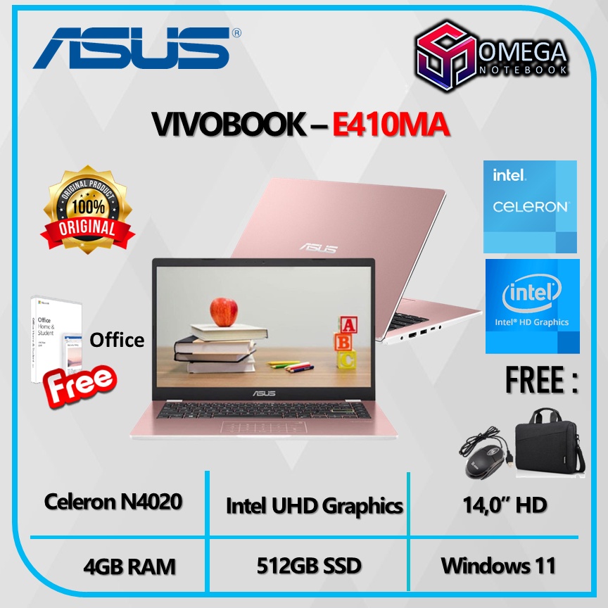Detail Laptop ASUS Vivobook E410MA / L410MA N4020 4GB 256GB 14,0 HD Win10 + Office Laptop Murah Untuk sekolah