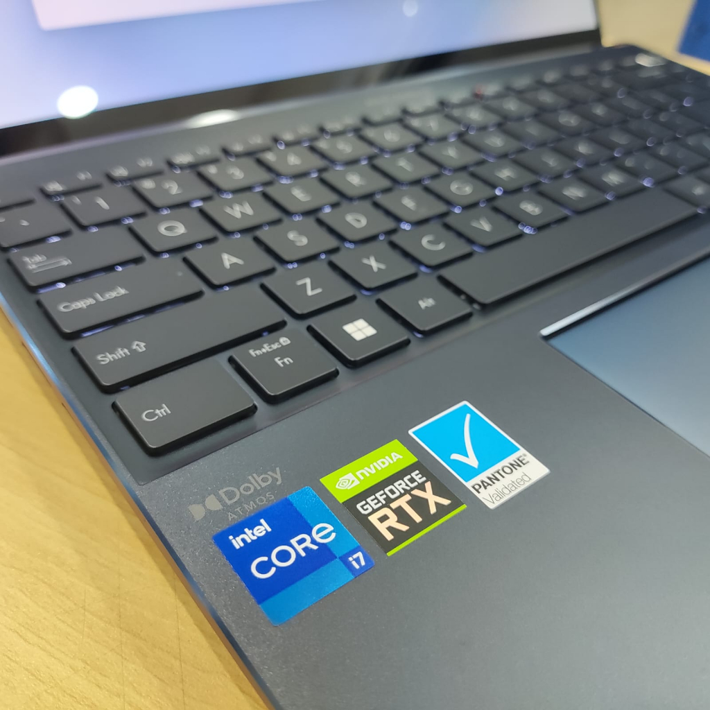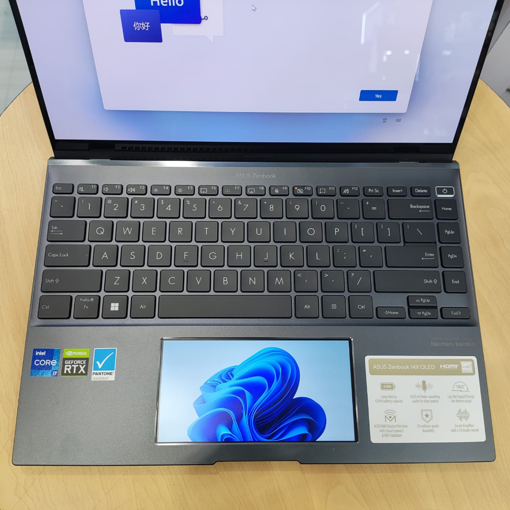 *Spesifikasi: Processor : 12th generation Intel® Core™ i7-1260P Processor 2.1 GHz (18M Cache, up to 4.7 GHz, 4P+8E cores) and Memori Standar : 16GB LPDDR5 RAM Tipe Grafis : NVIDIA® GeForce® RTX™ 2050 graphics with 4GB GDDR6 VRAM Display : 14” 2.8K (2880 x 1800) 16:10 OLED Touch Screen display with ultra-slim 4-sided NanoEdge bezels Storage : 1TB M.2 NVMe™ PCIe® SSD Gen 4 Keyboard :Backlit Keyboard Finger Print Connection : Wi-Fi 6E (802.11ax), and Bluetooth 5.2 Operating System : Windows 11 Home Original ScreenPad
