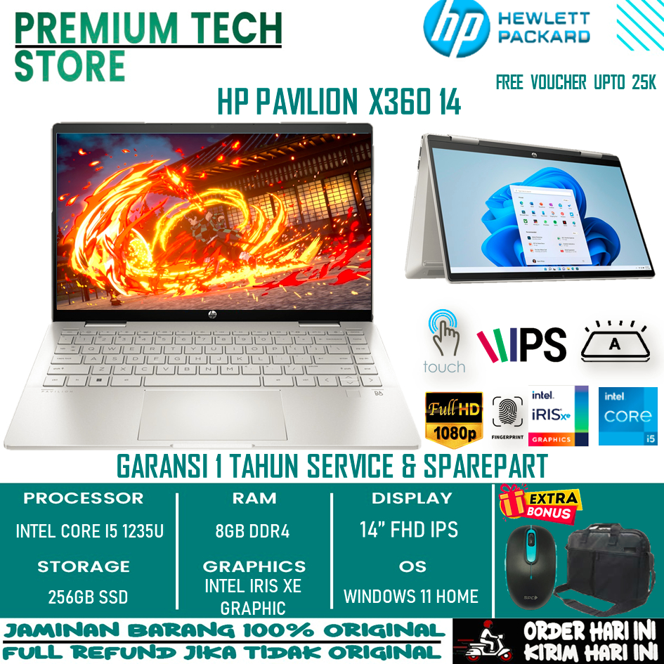 Detail Laptop Baru Hp Pavilion X360 14 Intel I5 1235U Ram 8Gb 256Gb Ssd Iris Xe Graphic Fhd Ips Touch Windows 11 Home Original