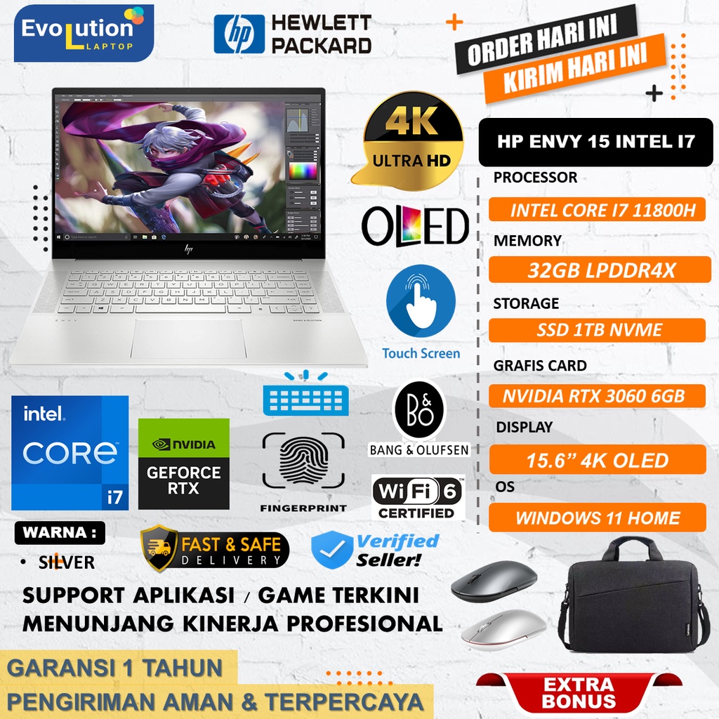 Video perkenalan produk Laptop Editing Hp Envy 15 Intel Core i7 11800H Ram 32GB 1TB SSD RTX3060-6GB 4K OLED TOUCH Windows11 SILVER. Sumber: Shopee.