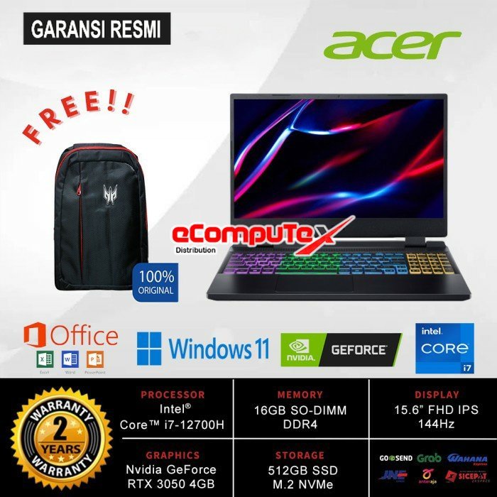 Type : ACER NITRO 5 AN515-58-78PT BLACK CORE i7-12700H 16GB 512GB RTX3050 W11+OHS BLACK