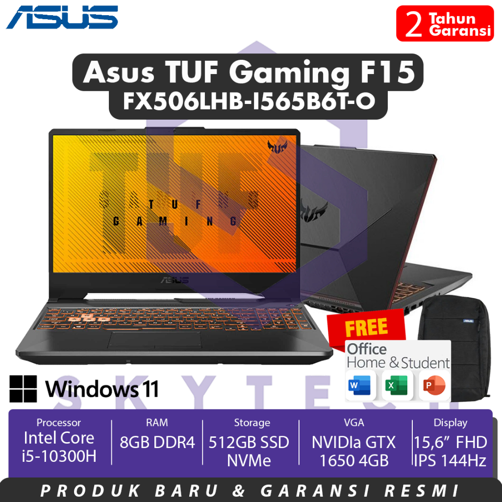 Detail LAPTOP GAMING ASUS TUF DASH F15 FX506LHB I565B6T-O INTEL i5 10300H 8GB 512GB GTX1650 WIN11 + OH 2021