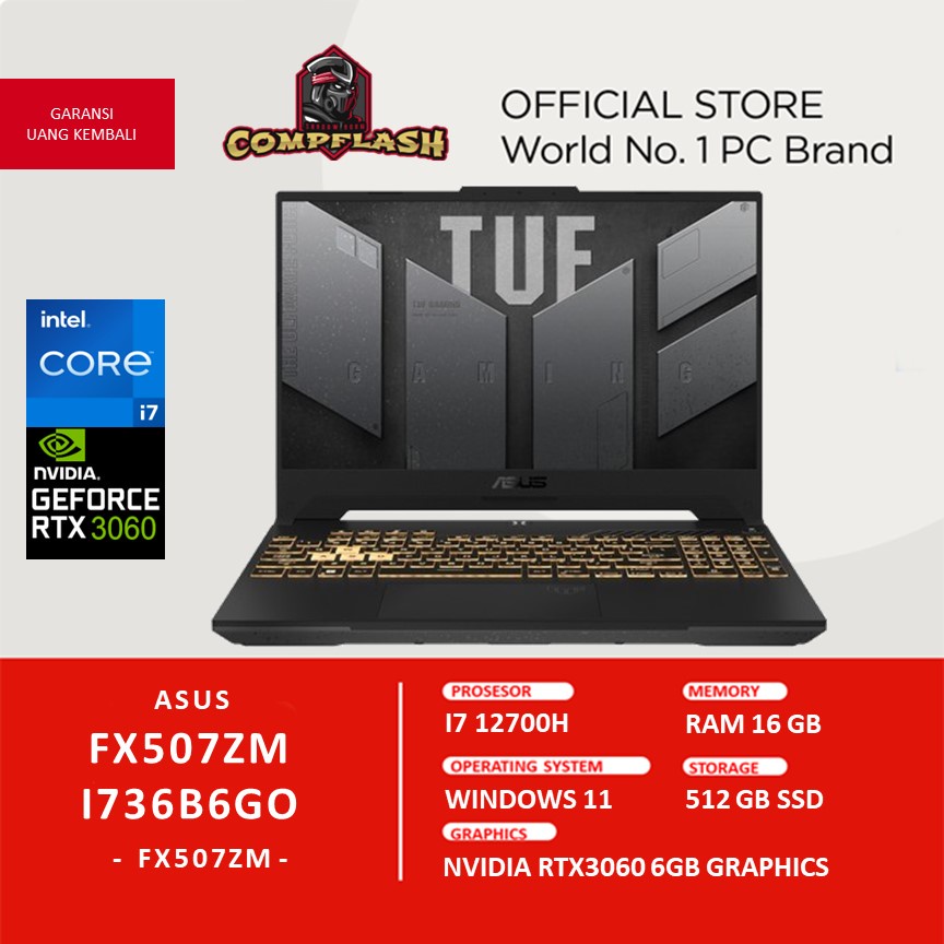 Deskripsi ASUS TUF FX507ZM I736B6GO RTX3060 6GB/ I7 12700H 16GB 512SSD W11+OHS 15.6FHD 144HZ RGB 2Y+1Y PERFECT TGP140 BLK ✅ GARANSI RESMI ASUS 2 TAHUN ✅ Garansi Toko 3 Hari (Rusak Ganti unit baru) apabila ada kerusakan yg diakibatkan cacat pabrik *Tidak termasuk kesalahan sendiri *Claim tukar unit wajib video unboxing ya ka, selama ada garansi TOKO yang di tentukan