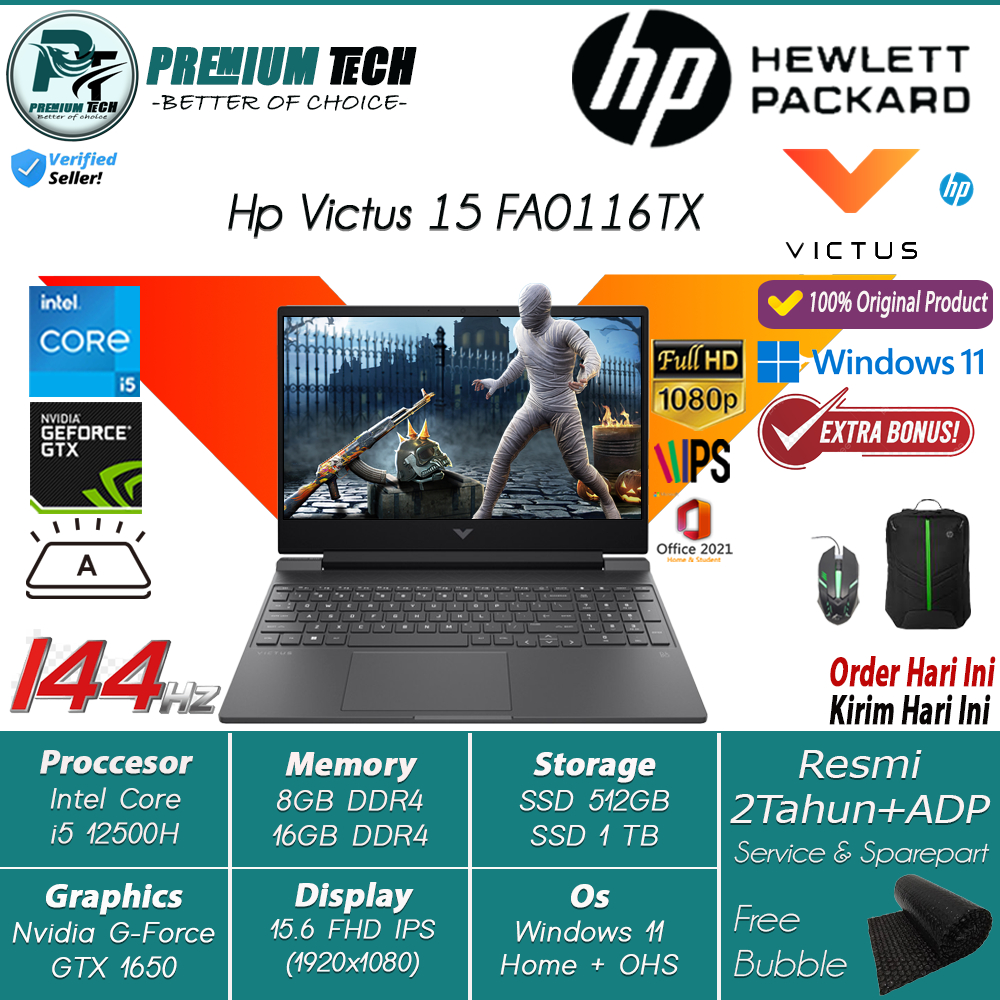 Detail Laptop Gaming Hp Victus 15 FA0116TX Intek i5 12500H 16GB 512GB NVIDIA GTX1650 15.6 FHD IPS 144HZ Windows 11 OHS