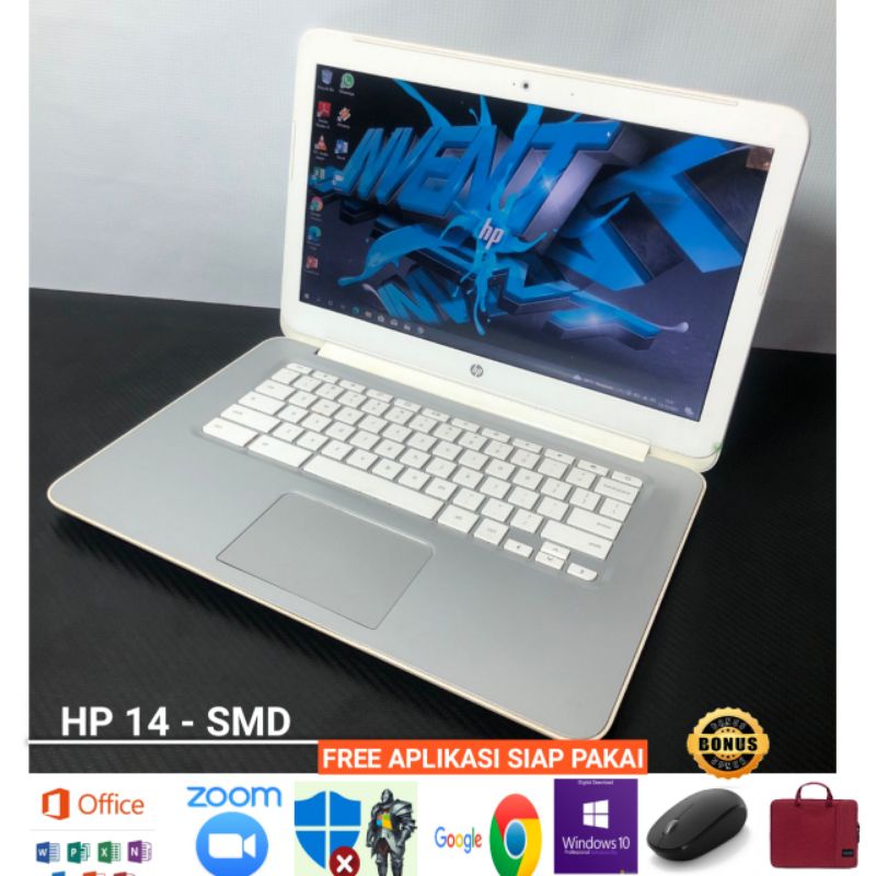 Laptop HP 14-SMB ===================== • Prosesor N2965U/ CPu @ 1.4 GHz • Ram 4 GB • Storage SSD 128GB • VGA intel HD grafis • Display 14 inch • OS Windows 10-64 bit =================== Fitur - Fitur : • Port USB • Port HDMI/VGA • Wi-Fi • Camera • Bluetooth • Headset • DVD • LAN ====================== Kelengkapan : • Unit + Adaptor / FREE TAS & MOUSE • Aplikasi : ✓ Office Word, Excel, Power Point (Fullset) ✓ ZOOM ✓Google Chome ✓PDF ✓ VLC ✓ Winrar ✓Antivirus ✓Adabe Reader ================== * Laptop tinggal SIAP PAKAI semua sudah disetingkan dan di instal untuk aplikasi kebutuhan sehari-hari !!!