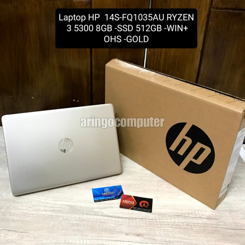 Laptop HP 14S-FQ1035AU RYZEN 3 5300 8GB -SSD 512GB -WIN+OHS -GOLD