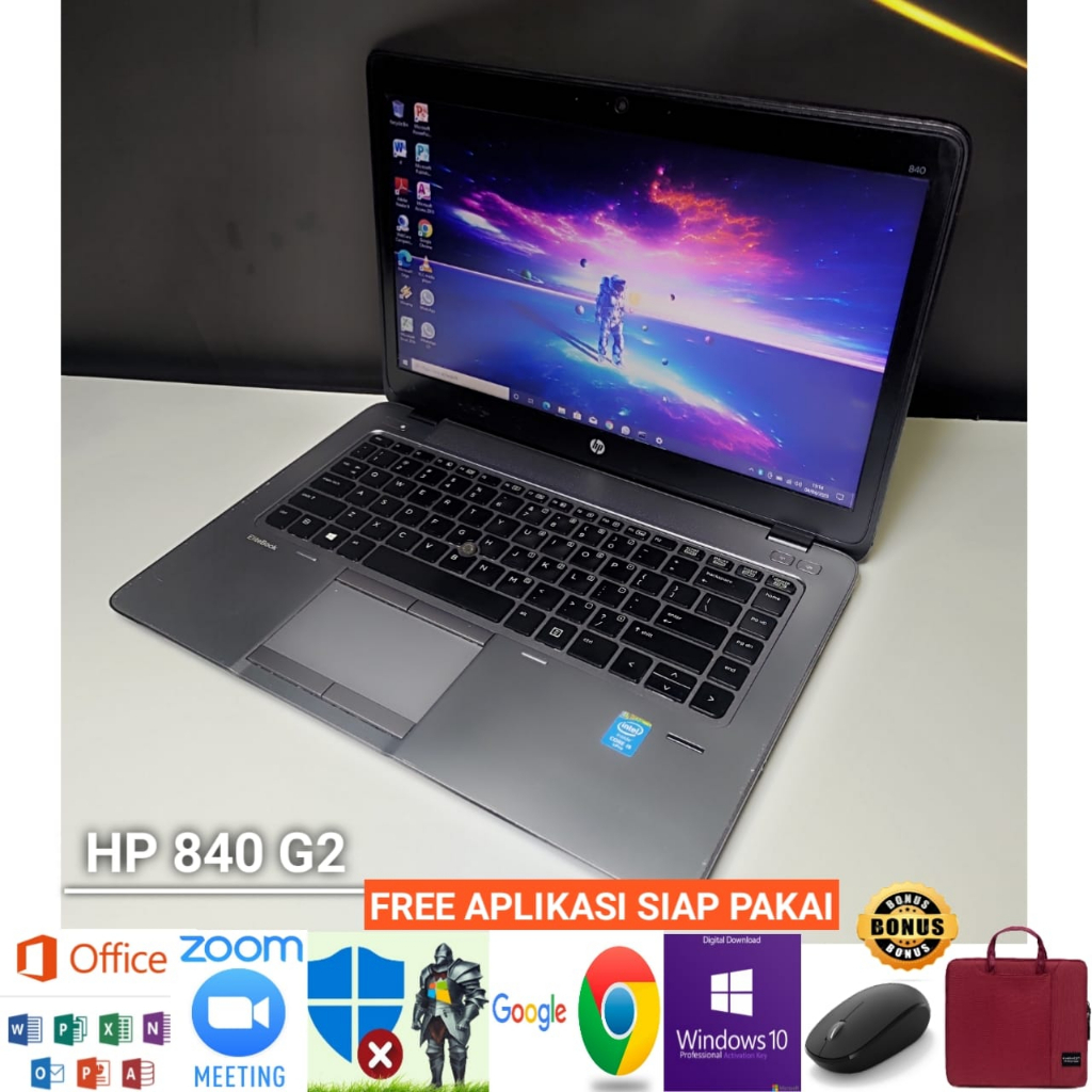 Laptop HP 840 G2 ===================== • Prosesor Intel Core i5-53000/ cpU 2,30ghz • Ram 8GB • Storage 256GB SSD • VGA intel HD GRAFIS 5500 • Display 14inch • OS Windows 10 - 64 Bit =================== Fitur - Fitur : • Port USB • Port HDMI/VGA • Wi-Fi • Camera • Bluetooth • Headset ====================== Kelengkapan : • Unit + Adaptor / FREE TAS & MOUSE • Aplikasi : ✓ Office Word, Excel, Power Point (Fullset) ✓ ZOOM ✓Google Chome ✓PDF ✓ VLC ✓ Winrar ✓Antivirus ✓Adabe Reader ================== * Laptop tinggal SIAP PAKAI semua sudah disetingkan dan di instal untuk aplikasi kebutuhan sehari-hari !!!