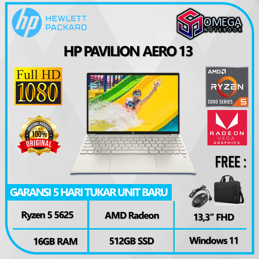 SPESIFIKASI : - Processor : AMD Ryzen™ 5 5625U (up to 4.2 GHz max boost clock, 16 MB L3 cache, 6 cores, 12 threads) - Operating system : Windows 10 Home 64 - Memory : 16 GB DDR4-3200 MHz RAM (onboard) - Internal storage : 512 GB PCIe® NVMe™ M.2 SSD - Display : 13.3" diagonal, WUXGA (1920 x 1200), IPS, micro-edge, anti-glare, 400 nits, 100% sRGB - Graphics : AMD Radeon™ Graphics - Ports : 1 SuperSpeed USB Type-C® 10Gbps signaling rate (USB Power Delivery, DisplayPort™ 1.4, HP Sleep and Charge); 2 - SuperSpeed USB Type-A 5Gbps signaling rate; 1 HDMI 2.0; 1 AC smart pin; 1 headphone/microphone combo - Audio features : Audio by B&O; Dual speakers; HP Audio Boost - Webcam : HP Wide Vision 720p HD camera with integrated dual array digital microphones - Keyboard : Full-size, backlit - Wireless : Realtek Wi-Fi CERTIFIED 6™ (2x2) and Bluetooth® 5.2 combo (Supporting Gigabit data rate) - Power supply type : 65 W Smart AC power adapter - Battery type : 3-cell, 43 Wh Li-ion polymer - Battery life video playback : Up to 10 hours and 15 minutes - Dimensions without stand (W x D x H) : 29.7 x 20.9 x 1.69 cm