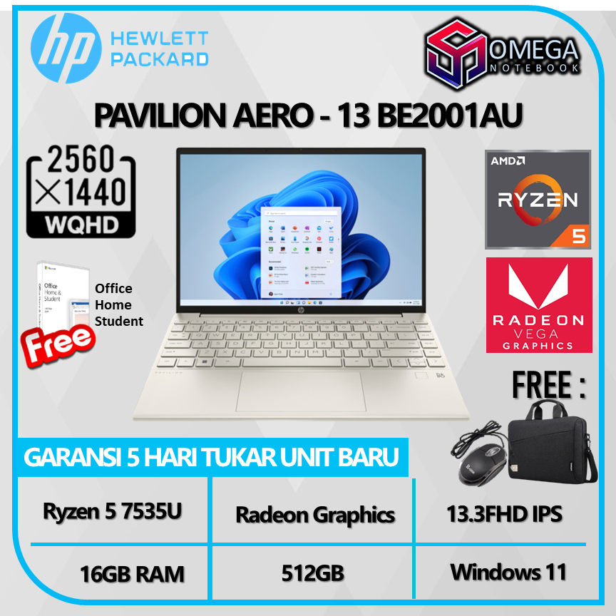 Detail Laptop HP Pavilion Aero 13 BE2001AU / BE2002AU Ryzen 5 7535U 512GB SSD 16GB 13.3 WUXGA IPS Windows 11