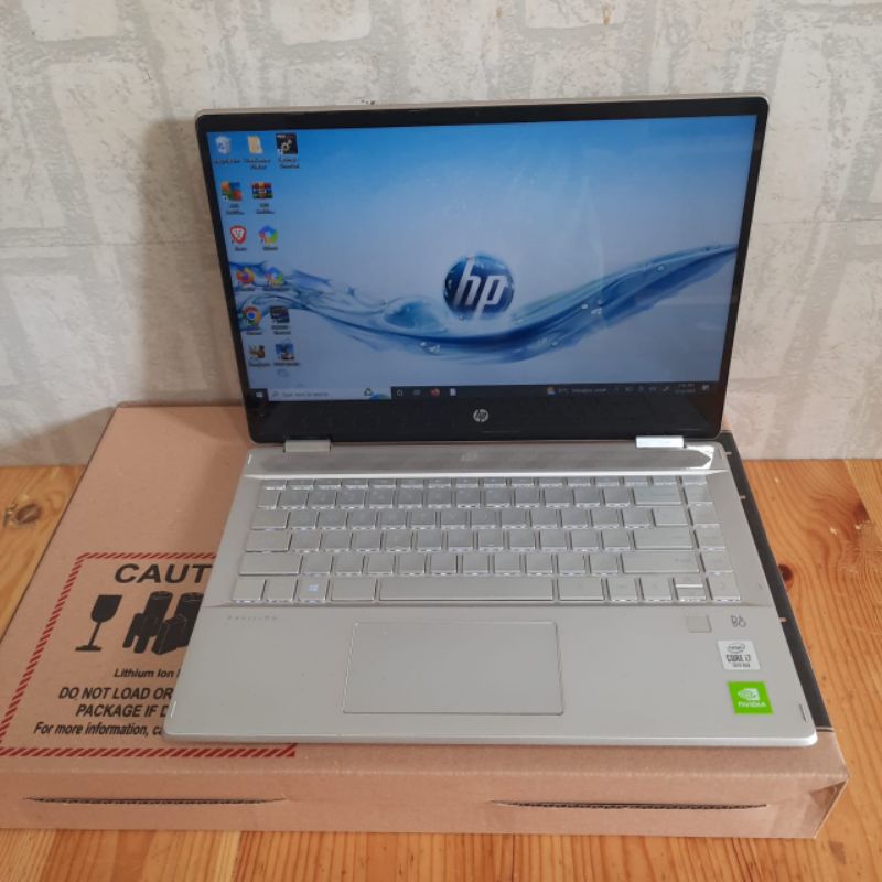 Laptop HP Pavilion X360 14-dh1006TX, 2 In 1 Convertible, (Touchscreen), Core i7-10510U, Gen 10Th, Ram 8/512Gb SSD, #DualVga: - Nvidia MX 250 2Gb, Layar Flip 360°, Bisa dilipad jadi Tab, Backlight, IPS, Super Slim, Gaming Editing Ngebut, Slim, Like New, Cantik, Lengkap, Gold Silver