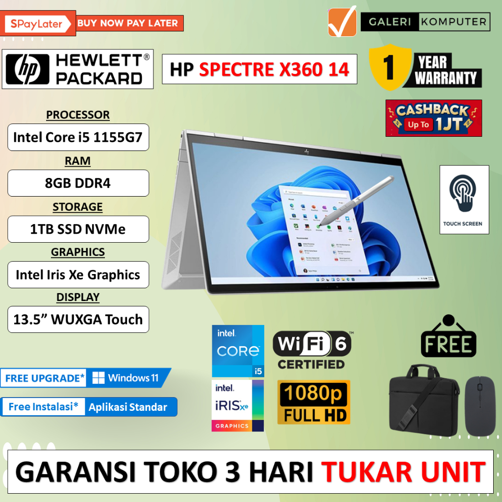 Video perkenalan produk Laptop HP Spectre x360 14 Intel i5 1155G7 8GB 1TB SSD Iris Xe 13.5" WUXGA Touch BL FP Win11Home Silver. Sumber: Shopee.