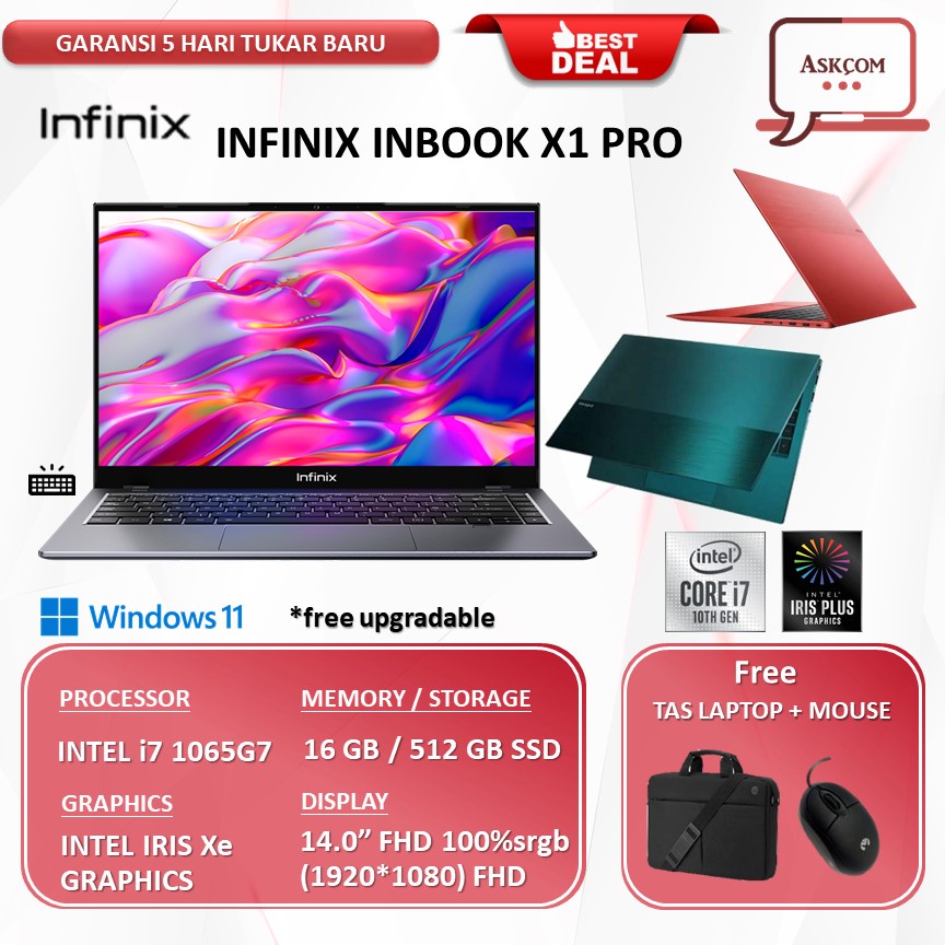 Detail Laptop Infinix INBOOK X1 PRO i7 1065G7 RAM 16GB 1TB SSD IRIS PLUS 14.0FHD IPS 100%sRGB Backlit
