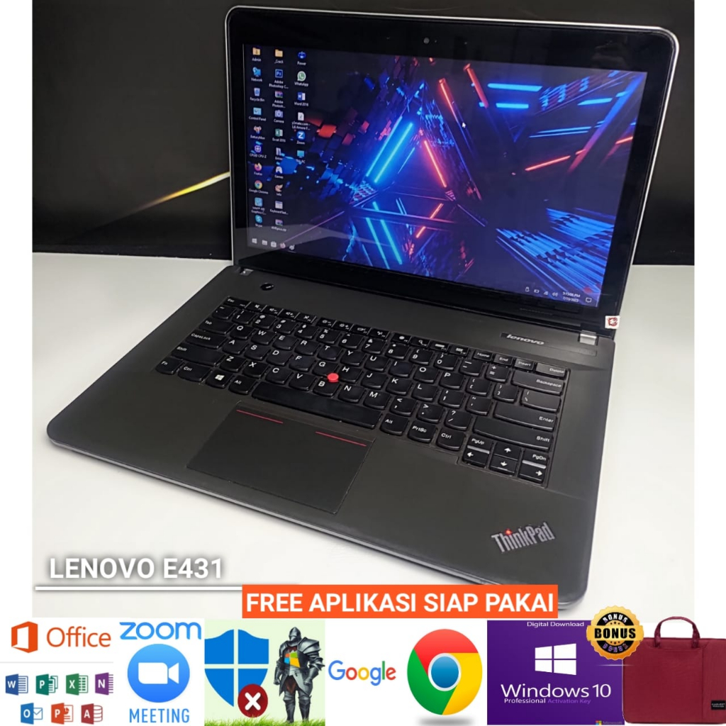 Laptop Lenovo E431 ===================== • Prosesor Intel core i5 ,cpu@2,6ghz • Ram 4GB /8GB • Storage 320HDD/128/256 SSD • VGA INTEL HD GRAFIS 4000 • Display 15 Inch • OS Windows 10 pro- 64 Bit =================== Fitur - Fitur : • Port USB • Port HDMI • Wi-Fi • Camera • Bluetooth • Headset • DVD • TOUCHSCREEN ====================== Kelengkapan : • Unit + Adaptor / FREE TAS • Aplikasi : ✓ Office Word, Excel, Power Point (Fullset) ✓ ZOOM ✓Google Chome ✓PDF ✓ VLC ✓ Winrar ✓Antivirus ✓Adabe Reader ================== * Laptop tinggal SIAP PAKAI semua sudah disetingkan dan di instal untuk aplikasi kebutuhan sehari-hari !!!