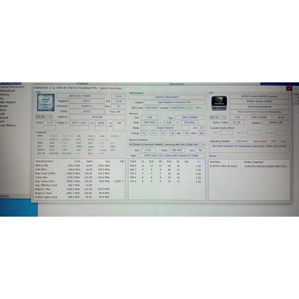 Laptop LENOVO P50S Specs : # Prosesor : Intel core i7-6500u # Storage : SSD 256/512/1TB # Ram : 8/16GB DDR3 # Screen : 15.6 inch (1920 x 1080 PX) # Grapic : INTEL HD Graphics 520 & NVIDIA QUADRO M500M 2GB # Os : Window 10 pro # Webcam : HD Web Camera 720p # Keyboard JP # Weight : 2,2 KG