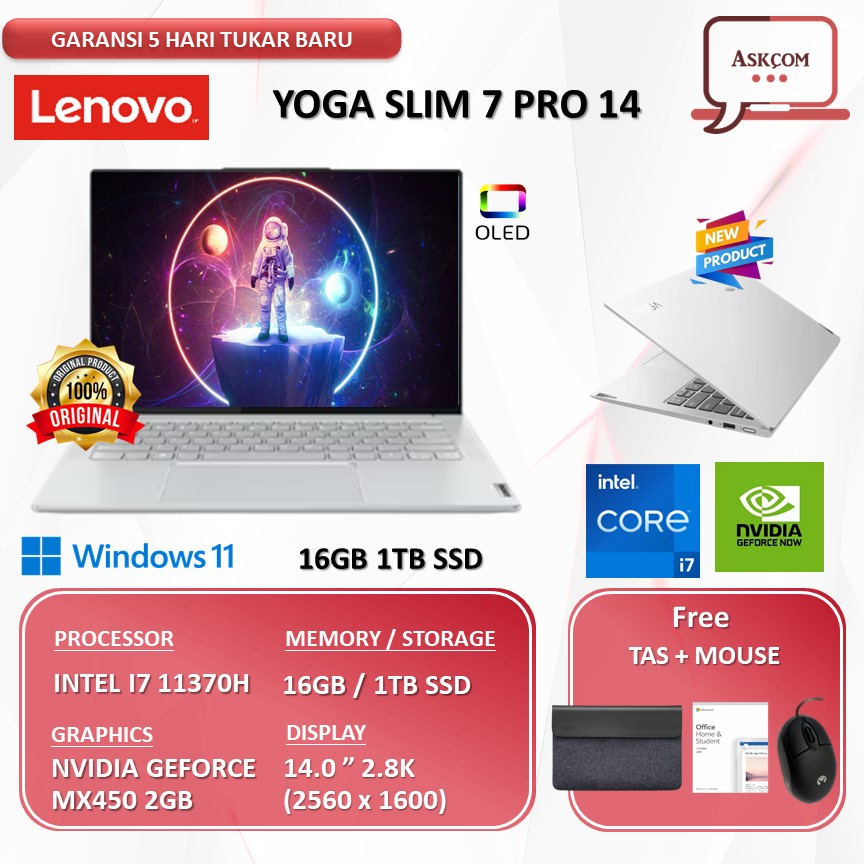 Spesfikasi: -Processor : Intel® Core™ i7-11370H (4C / 8T, 3.3 / 4.8GHz, 12MB) -Graphics : NVIDIA® GeForce MX450 2GB GDDR6 -Memory : 16GB Soldered LPDDR4x-4266, not upgradable -Storage : 1TB SSD M.2 2280 PCIe® 3.0x4 NVMe®, -Speakers : Stereo speakers, 2W x2, optimized with Dolby® Atmos®, audio by Harman -Camera : HD 720p -Display : 14" 2.8K (2880x1800) OLED 400nits Glossy, 100% DCI-P3, 90Hz, DisplayHDR™ True Black 500, Dolby® Vision™, Glass -Keyboard : Backlit, English -Color : Light Silver -System : Windows® 11 Home Single Language, English + OHS 2021 -Ports : 1x USB 3.2 Gen 1 (Always On) 2x Thunderbolt™ 4 (support data transfer, Power Delivery 3.0 and DisplayPort™ 1.4) 1x Headphone / microphone combo jack (3.5mm)