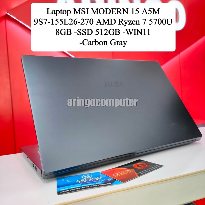 Komputer & Aksesoris > Laptop > Laptop Konsumer > Laptop MSI MODERN 15 A5M 9S7-155L26-270 AMD Ryzen 7 5700U 8GB -SSD 512GB -WIN11 -Carbon Gray