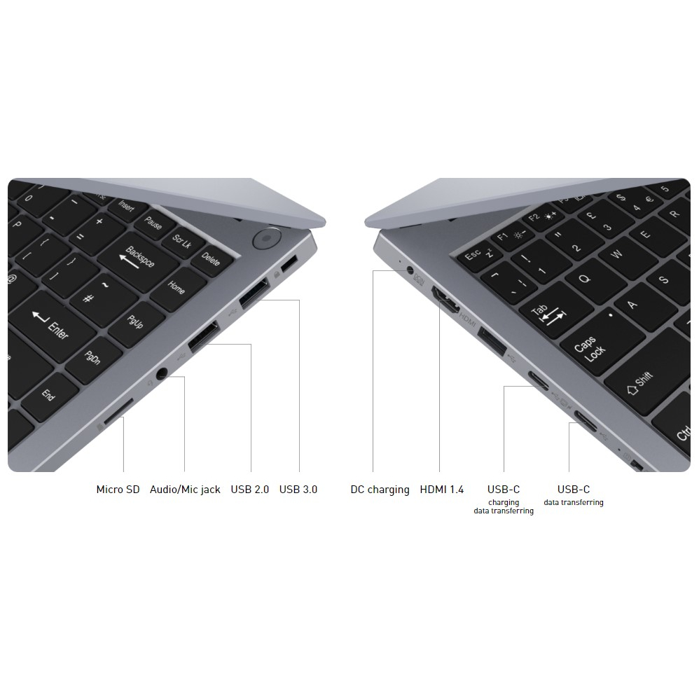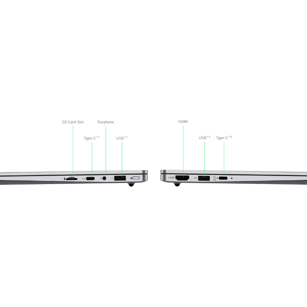 Ports : USB-C x 1 (Data, Charging and DisplayPort) USB-C x 1 (Data) USB 3.0 × 2 HDMI 1.4 × 1 SD card slot x 1 3.5 mm Headset and Microphone Jack x 1