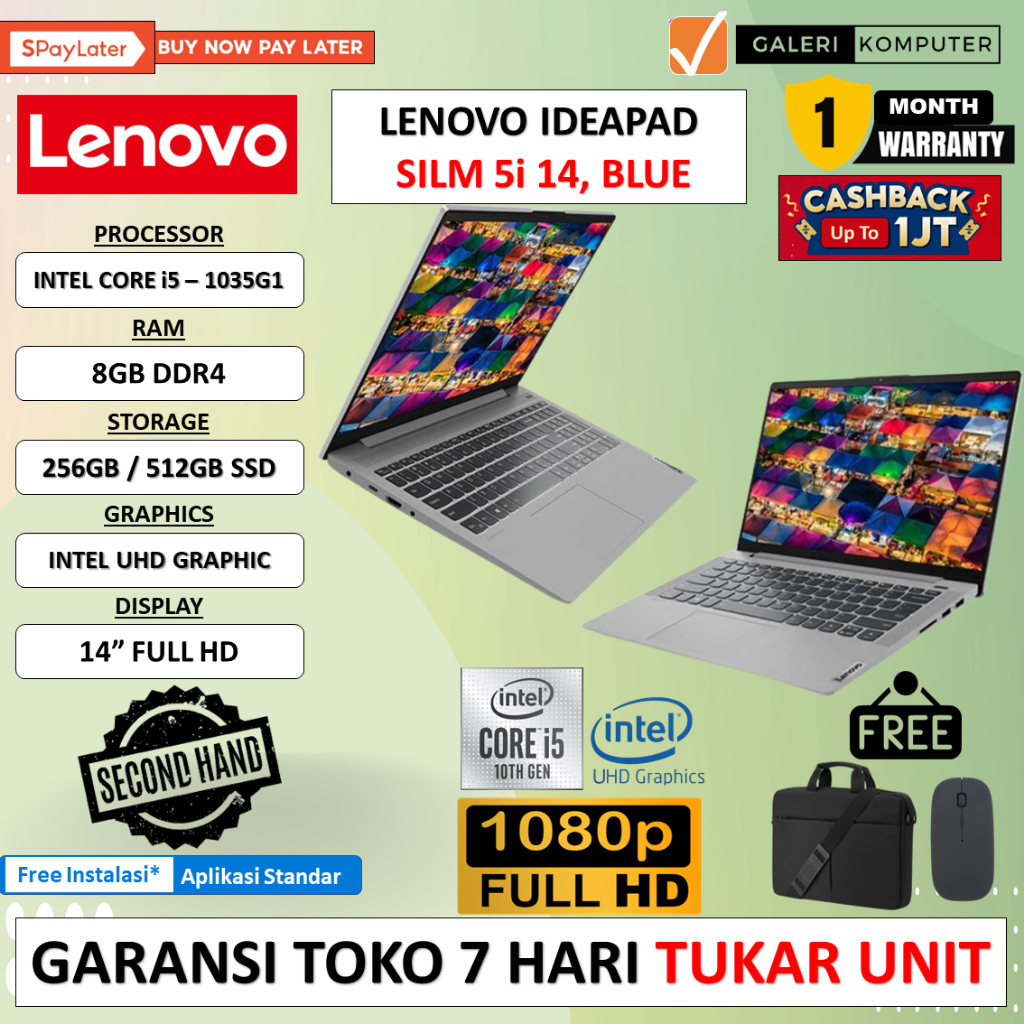Detail LAPTOP MURAH LENOVO IDEAPAD SLIM 5I 14 INTEL I5 1035G1 8GB 256GB 14.0 FHD WINDOWS 11 HOME ORIGINAL