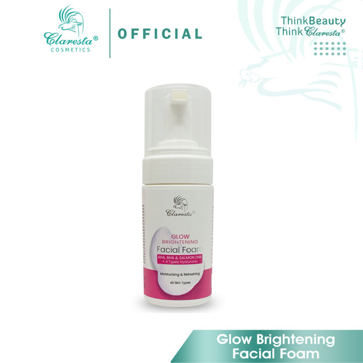 Claresta Glow Brightening Facial Foam Claresta Glow Brightening Facial Foam Pembersih wajah yang lembut dengan kombinasi AHA dan BHA yang membantu mengangkat sel kulit mati, mengurangi minyak berlebih di wajah, serta membuat kulit wajah tampak cerah dan lembab alami. Cara pakai : Tekan pump hingga keluar foam secukupnya, usap pada wajah yang sudah di basahi secara perlahan dan merata, tunggu beberapa saat lalu bilas dengan air. Peringatan : Hindari pemakaian di area berbahaya seperti mata, dan hentikan pemakaian apabila terjadi iritasi. No BPOM : NA18231200272