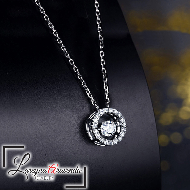 Specifications : Kalung : Titanium Model Kalung : Donat Liontin : Silver S925 Plated White Gold 18k Model Liontin : Circle Dancing Stone Warna : Silver Crystal : Swarovski Zirconia Putih Ukuran Kristal : ± 0,4 cm Ukuran Liontin : ± 1,1 cm Panjang Kalung : ± 45 cm Paket : 1 pc Kalung + 1 pc Liontin