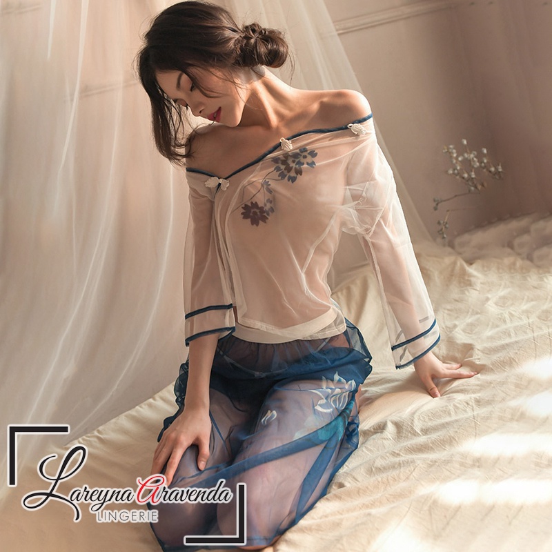Detail Lareyna Aravenda Set Lingerie + G String Crotchless Model Cosplay Cheongsam Dynasty LG433