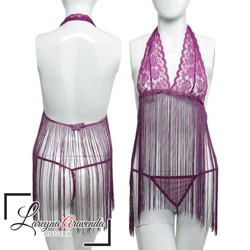 Bahan : Polyester Blends Model : Lace Rumbai Ukuran : One Size (Bahan Melar) Lebar Underbust : ± 33 - 44 cm Lingkar Underbust Maks : ± 90 cm Panjang Baju : ± 70 cm BB Ideal : ± 40 - 55 kg Paket : 1 Set (1 pc Lingerie + 1 pc G String)