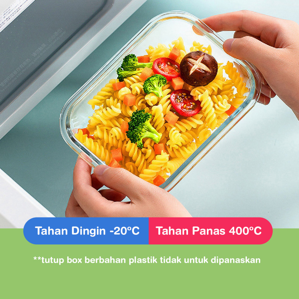 - Bahan kaca tebal dapat dipanaskan di microwave & oven (Tahan panas hingga 200ºC ) - Dapat disimpan dalam kulkas dan freezer (Tahan dingin hingga -20ºC) - Segel ganda lock dan silikon menutup dengan erat anti bocor dan kedap udara. - Desain unik dengan 3 pilihan warna (BIRU, HIJAU, PINK). - Tersedia juga varian 2 kolom dan 3 kolom (Ukuran Large 1040ml). - Bahan kotak kaca dan tutup plastik PP berkualitas FOODGRADE (Aman untuk makanan). - Lobang udara pada tutup fungsi mempermudah buka tutup.