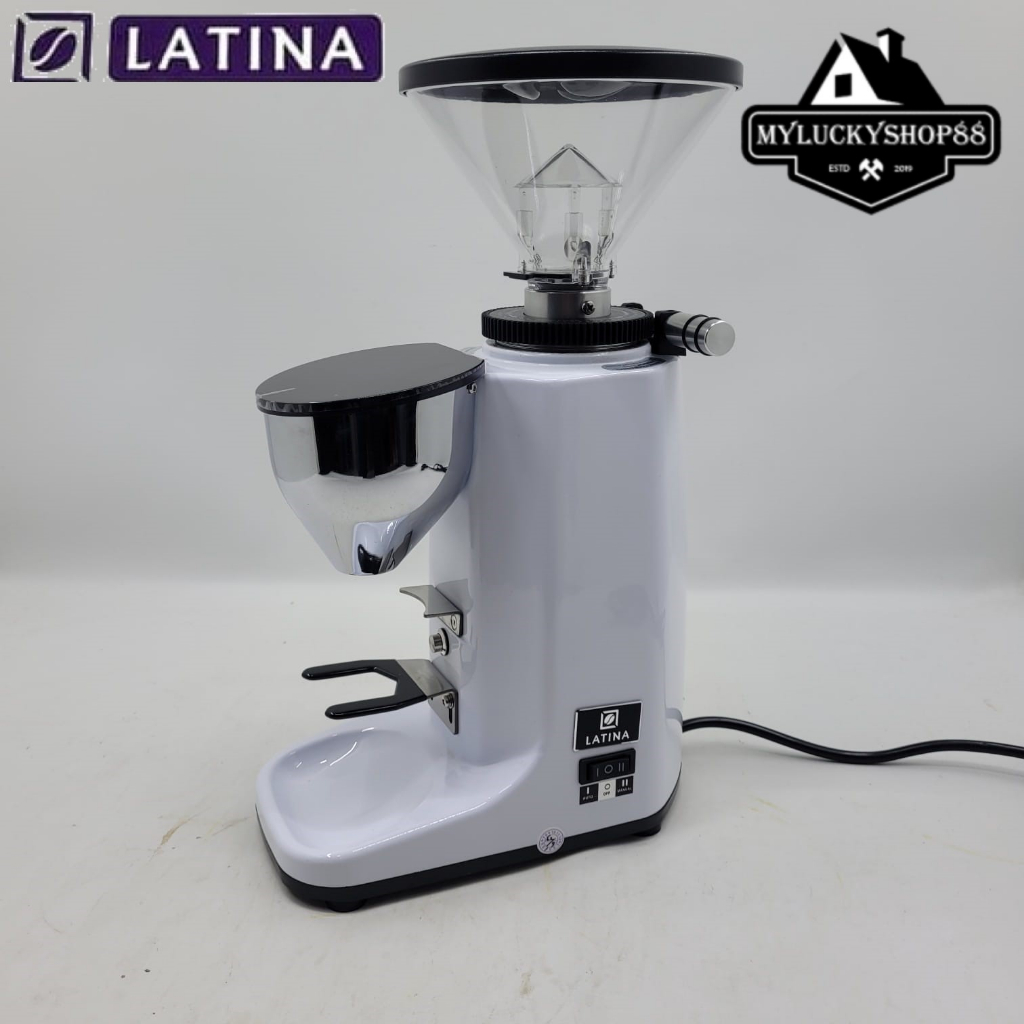 Model : Latina Pelikan DX60-V Coffee Grinder Dimensi Mesin : 230x140x480mm Kapasitas Corong : 250g/500g Berat Mesin : 7kg Voltase / Frekuensi : 220-240v / 50Mhz Konsumsi Daya / Rotasi : 200Watt / 2000 rpm Diameter Burrs : Flat 60mm
