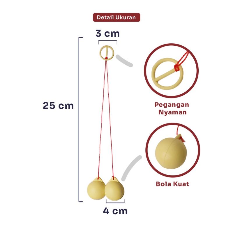 Di tengah tali penghubung Lato-Lato terdapat cincin yang menjadi alat kontrol bola tersebut agak bisa berbunyi saat diayunkan.