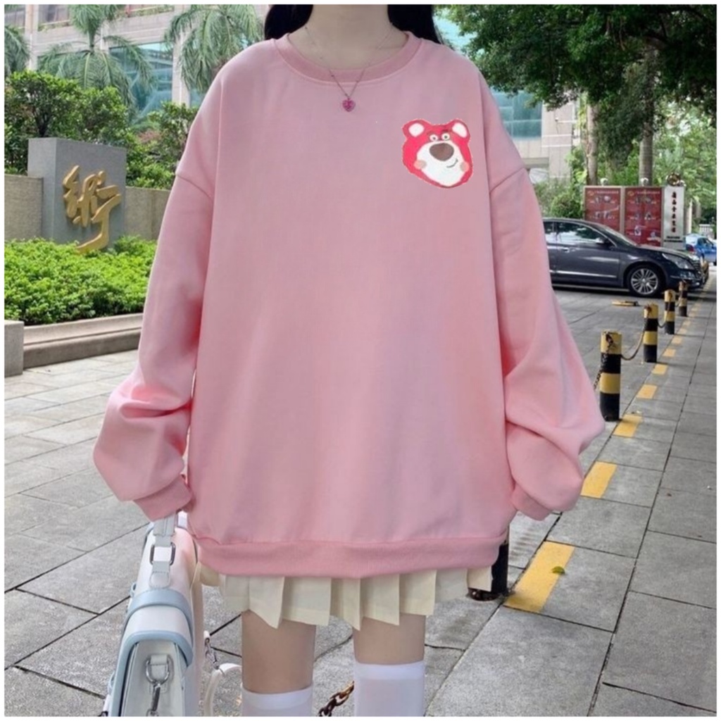 Detail LATSO BEAR SWEATER CREWNECK OBLONG WANITA ATASAN BLOUSE KOREAN STYLE FASHION TERBARU KASUAL OOTD