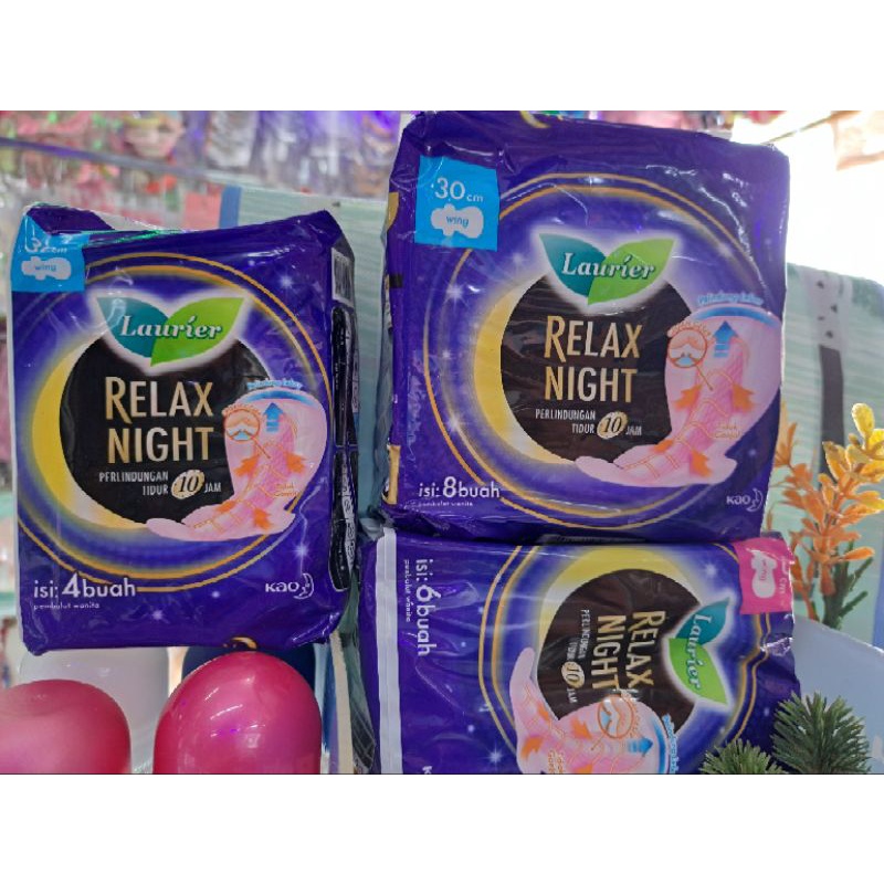 LAURIER RELAX NIGHT ORIGINAL/PEMBALUT WANITA PELIDUNG SAAT TIDUR 10JM(ISI 8,6,4)PANJANG 30CM,35CMLAURIER RELAX NIGHT ORIGINAL/PEMBALUT WANITA PELIDUNG SAAT TIDUR 10JM(ISI 8,6,4)PANJANG 30CM,35CM