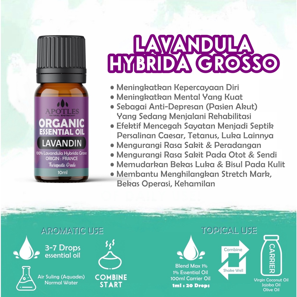 Kegunaan Apotles Lavandin Essential Oil (Aromatherapy) :