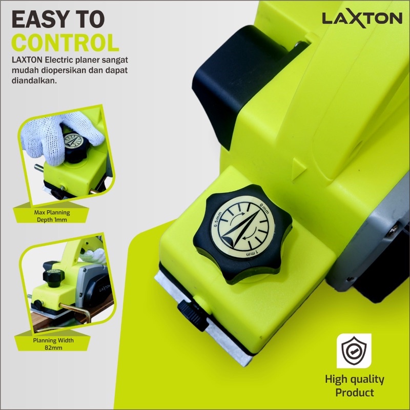 Spesifikasi: • mesin planer • mesin serut • merk LAXTON • tipe LX-192 • pisau 82mm • daya 500 watt - 220V 50Hz - 16000 rpm - Arus 2.5A - Shiplapping 23mm - Panjang 293mm • kualitas mantap gan