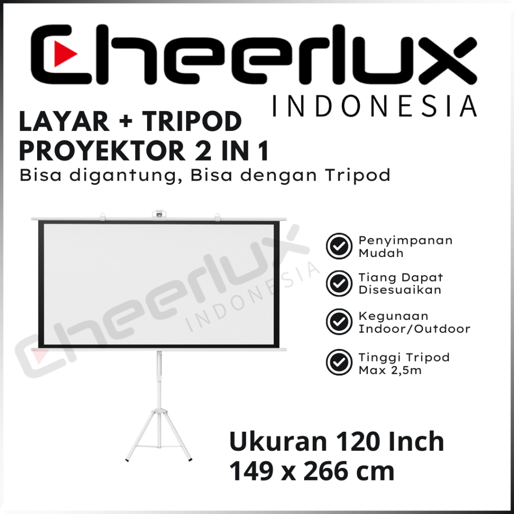 LAYAR PROYEKTOR PLUS TRIPOD 2 IN 1 | Screen Tripod Projector Standing 120 Inch 16:9
